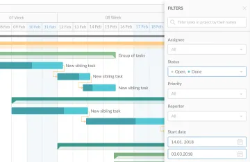 Gestión de tareasPuede configurar el estado y la prioridad de tareas, seguir su progreso, personalizar columnas, hacer modificaciones masivas, aplicar filtros.