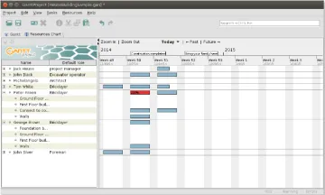Organice tareas en una estructura de desglose del trabajo . Árbol jerárquico donde el progreso, las fechas o los costos de las tareas de nivel inferior se resumen en los niveles superiores. Las tareas de resumen pueden colapsarse para ocultar tareas que no son importantes en este momento.Dibuje restricciones de dependencia entre tareas, como “iniciar X cuando Y termina” y GanttProject se encargará de hacer cumplir estas restricciones. Puede agregar un retraso o usar otros tipos de restricciones.Cree líneas base para poder comparar el estado actual del proyecto con los planes anteriores.La tabla PERT para la vista de solo lectura se puede generar a partir del diagrama de Gantt.